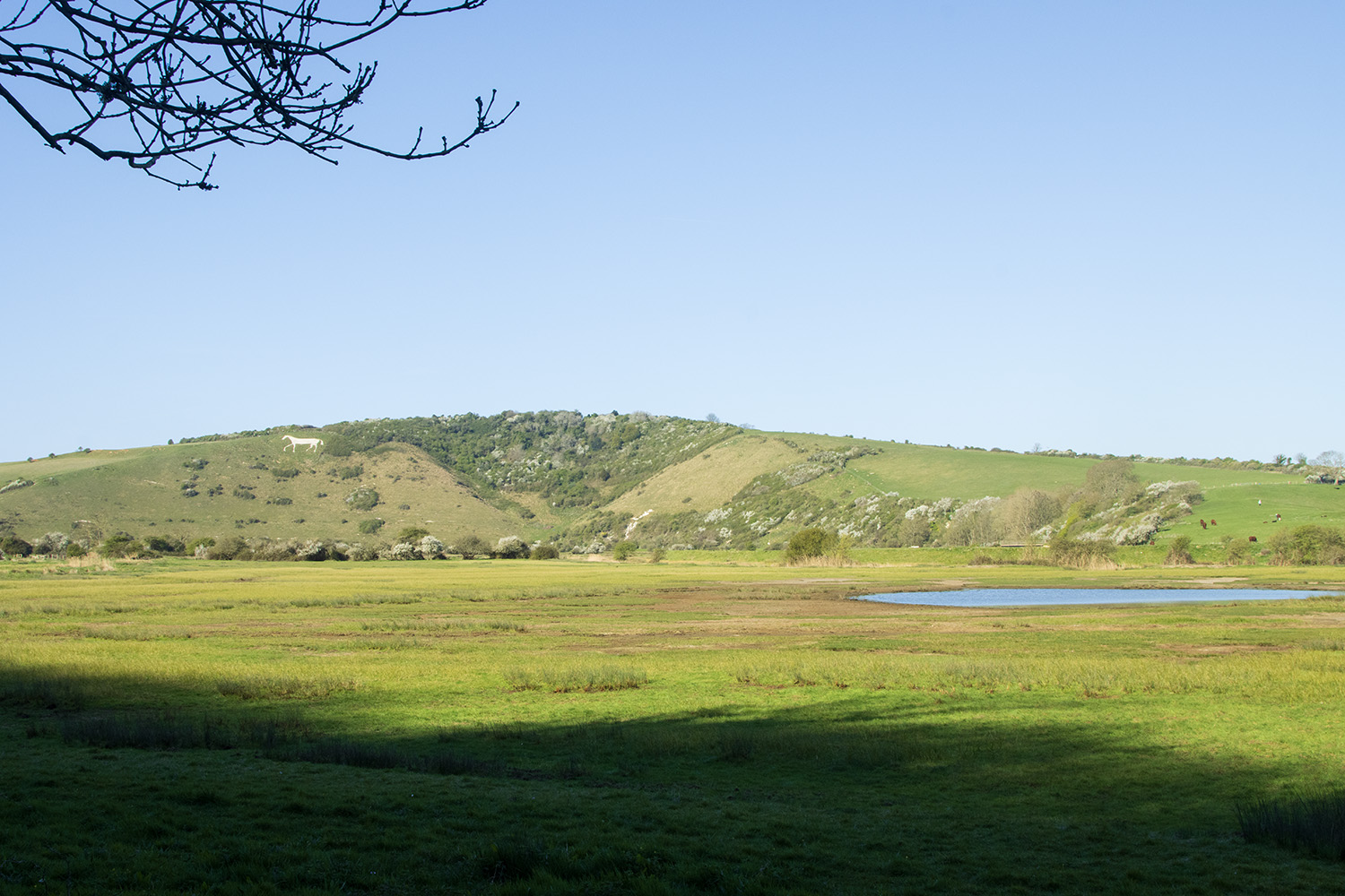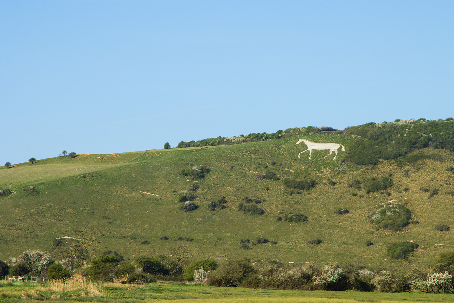 Litlington White Horse, a striking chalk hill figure in East Sussex. It sits on Hindover Hill, overlooking the Cuckmere Valley, and is one of only eleven horse hill figures in England outside of Wiltshire