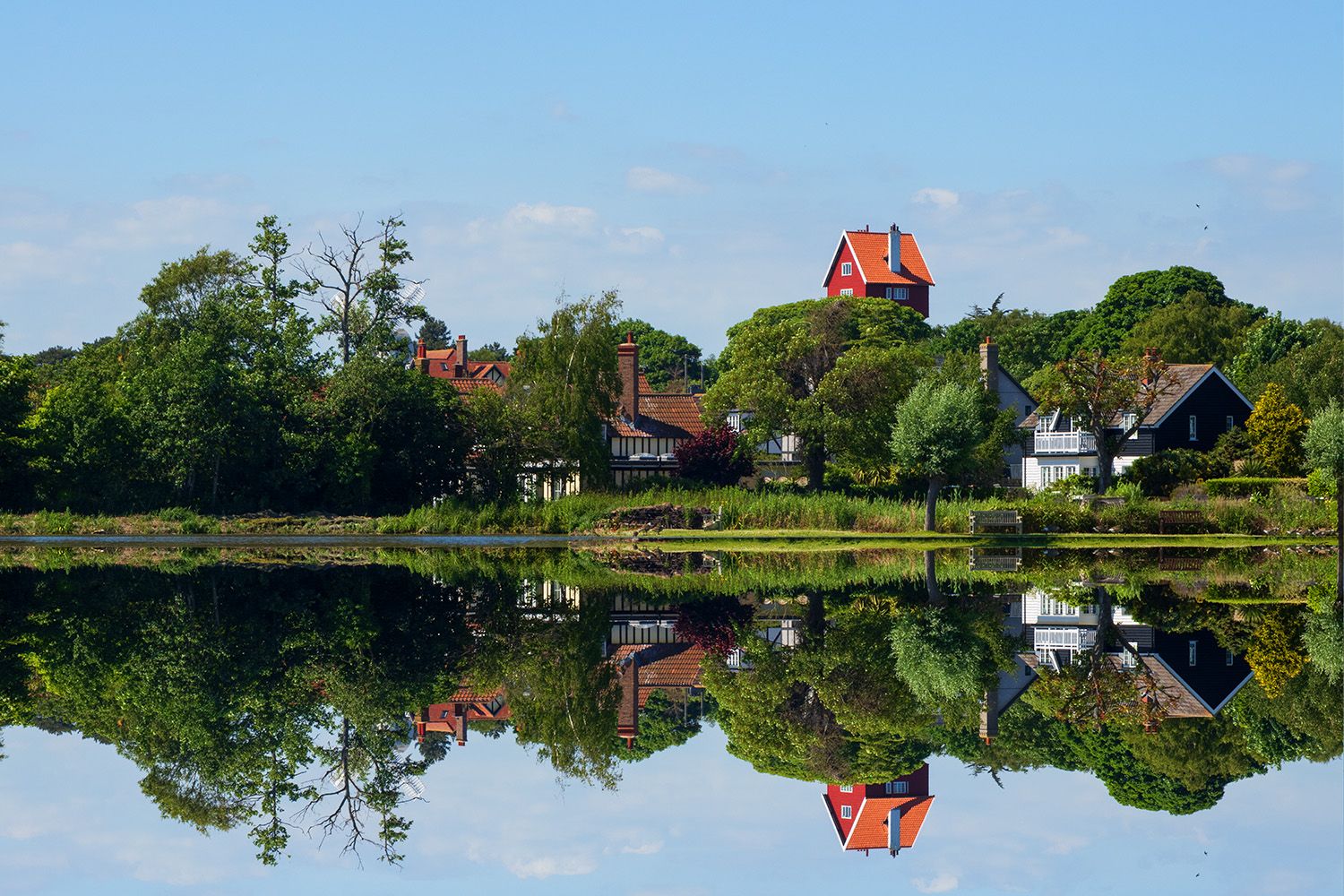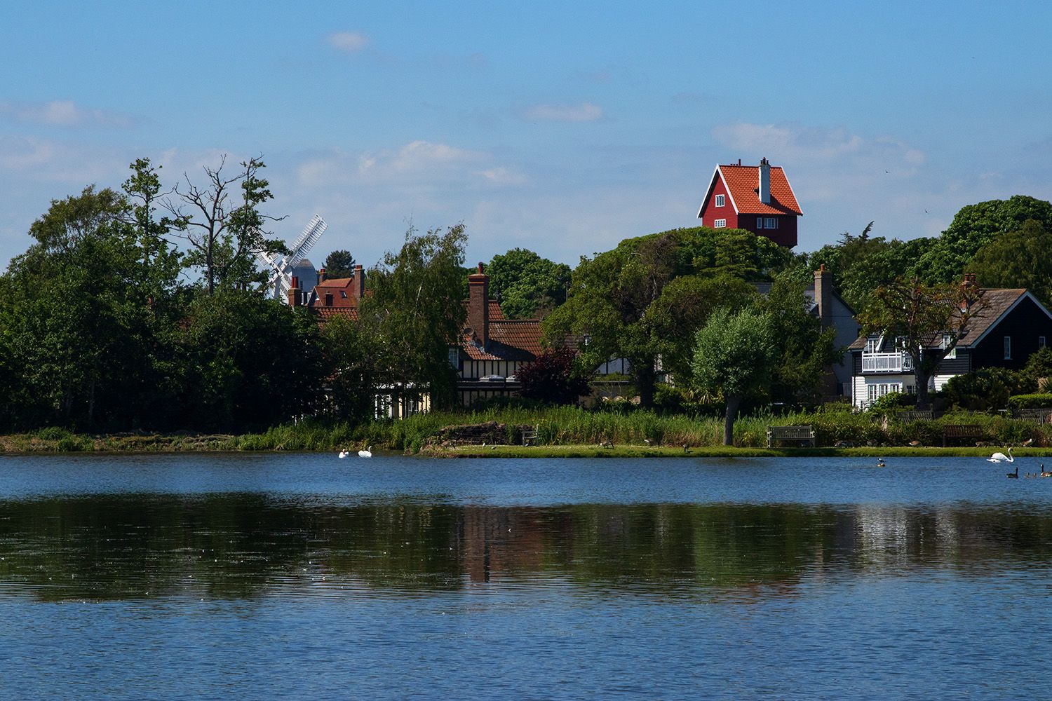 Thorpeness, a charming village on the Suffolk coast, is a unique blend of whimsy and history. Originally a small fishing hamlet, it was transformed in the early 20th century by Glencairn Stuart Ogilvie into a fantastical holiday village. The village is renowned for its picturesque Meare, an artificial boating lake inspired by J.M. Barrie's Peter Pan, complete with islands and hidden treasures. The iconic House in the Clouds, a former water tower turned quirky holiday home, and the charming windmill add to the village's fairy-tale ambiance. Thorpeness offers a delightful escape with its blend of natural beauty and architectural whimsy.